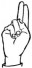 На ћирилици написано КРСТИМИР КЛАРИЋ састоји се из 14 слова [?]. Исписано ћириличном једноручном азбуком за глувонеме: